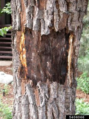 Thousand cankers disease is caused by the fungus Geosmithia morbida, and this pathogen is transmitted by the walnut twig beetle, Pityophthorus juglandis. This disease impacts black walnut and, until 2010, was only found west of the Mississippi River. The disease gets its name from the many tiny black cankers caused by the fungus growing in the phloem.